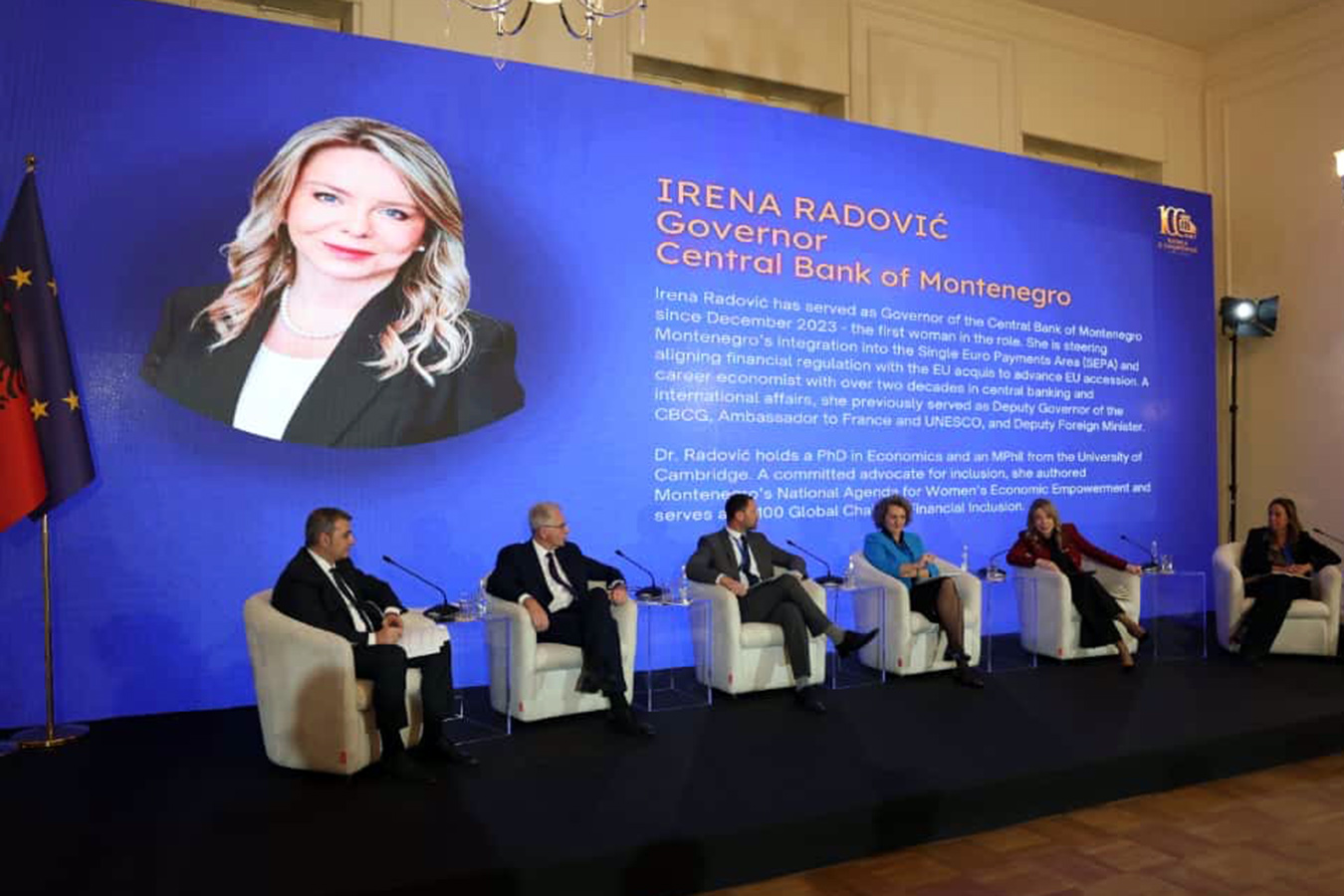 Guvernerka Radović govorila je na panelu Strateški izbori i budući izazovi Evrope, kojim je predsjedavao guverner Banke Albanije Gent Sejko, a među učesnicima su bili i Alfred Kammer, direktor za Evropu Međunarodnog monetarnog fonda, Primož Dolenc, guverner Banke Slovenije, Jasmina Selimović, guvernerka Centralne banke Bosne i Hercegovine i Debora Revoltella, glavna ekonomistkinja Evropske investicione banke.