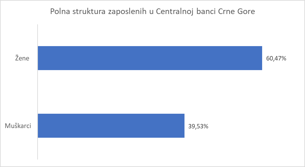 U polnoj strukturi zaposlenih dominiraju žene, koje čine 60,47% ukupnog broja zaposlenih.