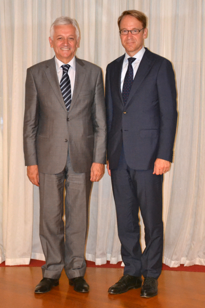 Predsjednik Dojče Bundesbanke dr Jens Vajdman posjetio je Crnu Goru i sastao se sa guvernerom CBCG Milojicom Dakićem i njegovim saradnicima. U razgovorima je učestvovao i ministar finansija Radoje Žugić.