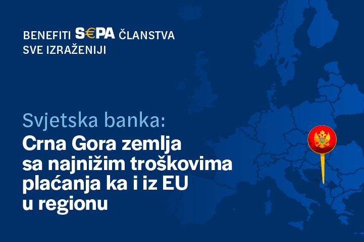 Crna Gora se, nakon ulaska u SEPA, od države sa najvišim troškovima prekograničnih plaćanja na Zapadnom Balkanu u 2025. godini, pozicionirala kao zemlja sa najnižim troškovima prekograničnih plaćanja prema Evropskoj uniji, navedeno je u trećem izdanju izvještaja Svjetske banke “Measuring the Cost of Cross-Border Business-to-Business Payments in the Western Balkans” (februar 2026).